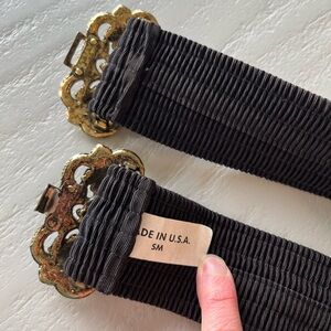 Vintage 80s Black Elastic Cinch Belt with Gold Ornate Buckle