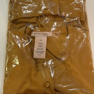 Philosophy Cardigan Gold Scoop Neck Button Front 3/4 Sleeves Knit Sz Large