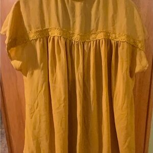 Add a touch of elegance to your wardrobe with this beautiful mustard blouse. Featuring intricate lace details, it's perfect for any occasion.