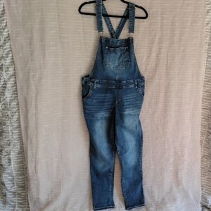 Chic denim overalls with adjustable straps. Front pocket detail. Ideal for everyday style.