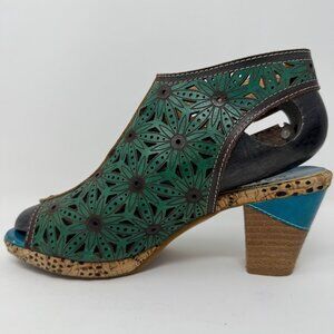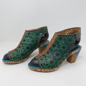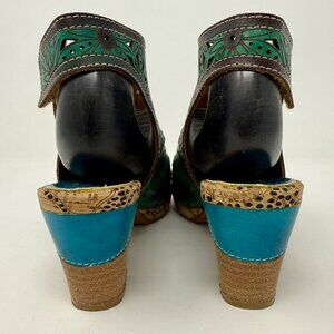 L'Artiste Hand Painted Leather Slingback Block Heels 7.5-8