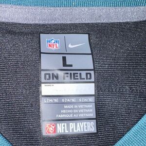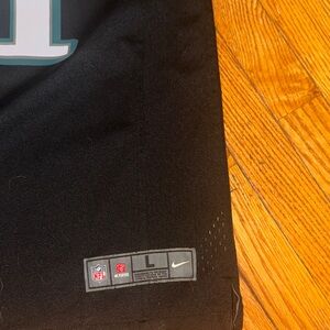 Nike kids' jersey with bold black and green design, latex Kelly Eagles green trim on the sleeves. 100% polyester. Size Boys 14/16. Features Eagles logo and number 11 Carson Wentz 2021 era jersey.Perfect for young fans. Excellent condition. No stains rips tears or holes. Pet Free Smoke Free Home Fast Shipping. All items neatly gift wrapped with small beauty care item.