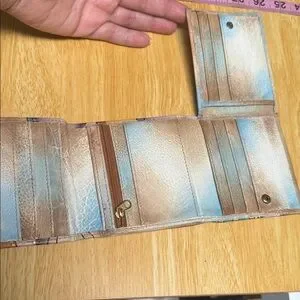 Handpainted abstract wallet, 10 credit card slots inside, Dollar bills compartment, zip-pocket for coins