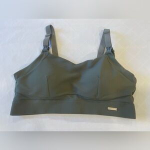 High-Impact Nursing & Pumping Bra, thoughtfully designed with sewn-in cups for a perfect fit that won't budge, even after washes. Crafted with ribbed fabric, a chic neckline, and adjustable straps, this nursing and pumping bra is the ideal addition to your postpartum wardrobe. As a new mom, you'll love the versatility of wearing it with the straps crossed for enhanced support or non-crossed for a laid-back, comfortable fit.