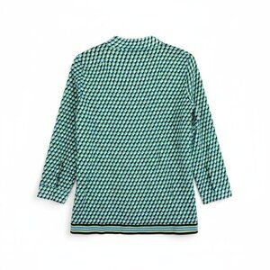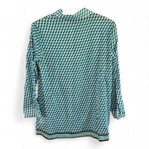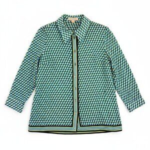 Michael Kors shirt, women's cotton shirt, aqua black top, size 10 blouse, 3/4 sleeve shirt, button front shirt, designer top, casual wear blouse, lightweight shirt, Michael Kors cotton, aqua geometric shirt, geometric print blouse, women's designer shirt