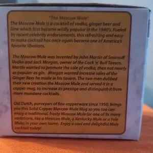 Included on the box, History of the drink and Recipe for Exquisite Beverage.