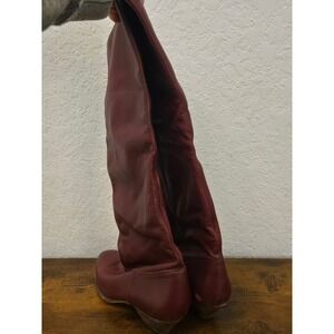 9 West Women's Burgundy Leather Knee High Boots Slouchy Style Size 6.5