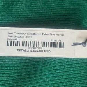 NWT $155 Alex Mill Ava crewneck Fine Merino Wool Sweater Emerald Green Medium