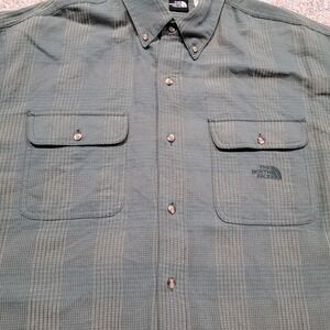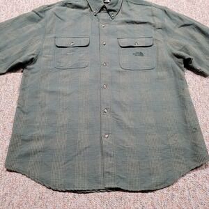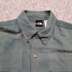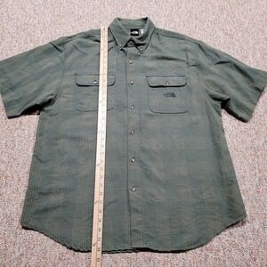 The North Face Shirt Mens Large Green Plaid Button Down Short Sleeve Hiking Camp