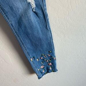 Chelsea and Theodore Women’s Floral Embroidered Distressed Jeans Size 8 Boho