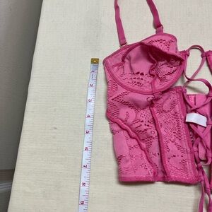 UO Out From Under M pink Amour lace up corset top