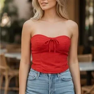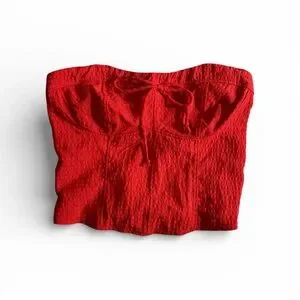 Elevate your style with this chic red strapless top. Perfect for any occasion, it offers a flattering fit and a bold color statement.