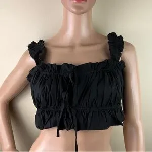 NEW WEWOREWHAT BLACK DOUBLE TIE CROP TOP