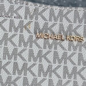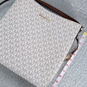 Stylish crossbody with iconic MK monogram. Cream color with tan branding. Perfect for everyday use with interior pockets and back slip pocket.