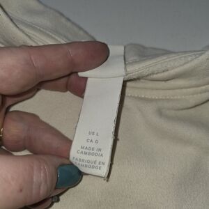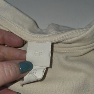 H&M A Paris cream/ivory graphic crewneck sweatshirt with gold button details on one shoulder. Relaxed, oversized fit. Soft cotton blend material.