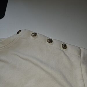 H&M White Sweater with 'À Paris' Print Large Gold Shoulder Buttons 60% Cotton