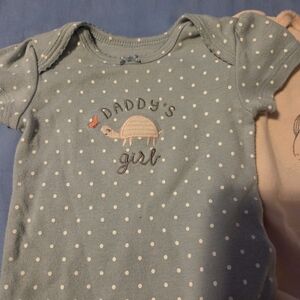 Bundle includes 6 pieces: 4 onesies and 2 rompers. All are carter's brand and in good, used condition.