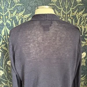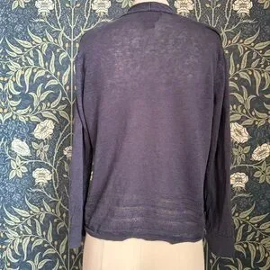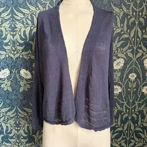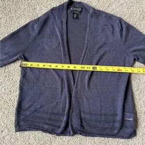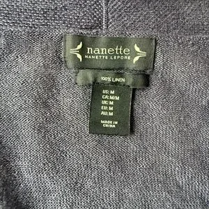 Nanette Lepore open dark grey/navy front cardigan. This 100% linen cover-up is perfect for summertime layering in the office or beach.