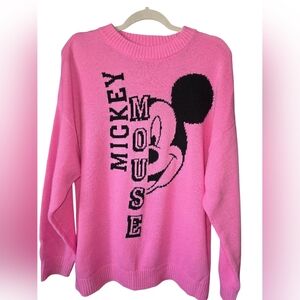 Disney Sweater, Mickey Mouse Sweater, Pink Knit Sweater, Cozy Disney Top, Cute Pink Sweater.
