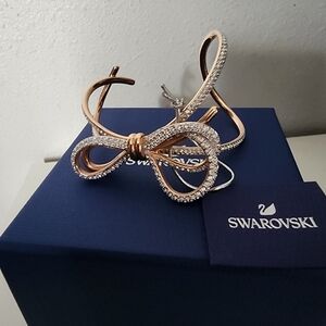 Elegant Swarovski bracelet featuring a stunning rose gold and silver bow design. Perfect for adding a touch of sparkle to any outfit.