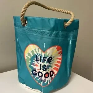 SEA BAGS TIE-DYE LIFE IS GOOD BEACHCOMBER BUCKET BAG TOTE Teal Blue Rainbow