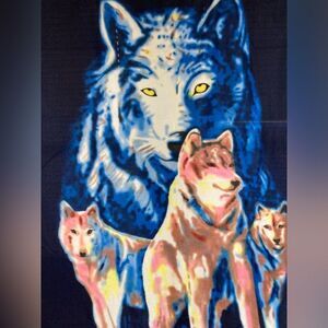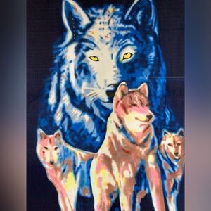 Snuggle up with this brand new Northpoint Wolf Deluxe Fleece Throw Blanket! Featuring a stunning Wolf Pack design in blue, black, and brown, this warm and soft fleece throw is perfect for any room in your home. Measuring 50\" x 60\" and made from 100% polyester, this blanket is machine washable on a gentle cycle and can be tumble dried on low heat.