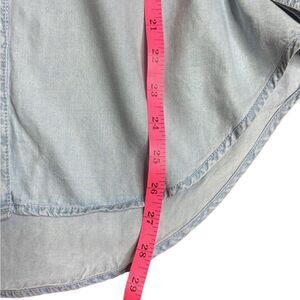 Size and materials tag removed but measures and fits like a large. Material feels like Tencel