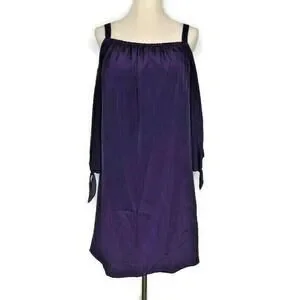 Madewell Womens 100% Silk Cold Shoulder Shift Short Dress Tunic Purple Lined 0
