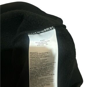Cozy black hoodie with pink and white logo. Perfect for casual wear. Features a stylish sleeve design.