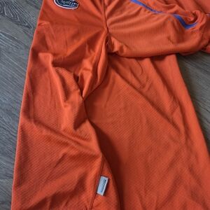 Nike polo shirt in vibrant orange with blue accents. Features embroidered logo on chest. Make me an offer