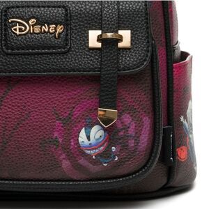 This enchanting WondaPop fashion mini backpack, in a spooky burgundy and black hue, celebrates the whimsical charm of the characters from "The Nightmare Before Christmas." Find your favorite NBC on the bag including Jack, Sally, Zero, the Mayor of Halloween Town, and Lock, Shock and Barrel! Designed with versatile fabric straps, perfect for adorning with your cherished pins and accessories. Included with the backpack is a WondaPop dust bag to help keep your bag looking great when stored.