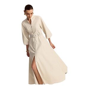 COMMENSE Belted Button Front Maxi Linen Dress COLOR - Apricot SIZE Small NWT