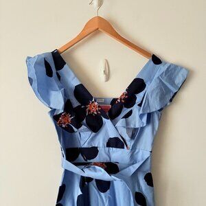 Kate Spade Grand Flora Poplin Midi Dress NWT Blue Heron Size 0
