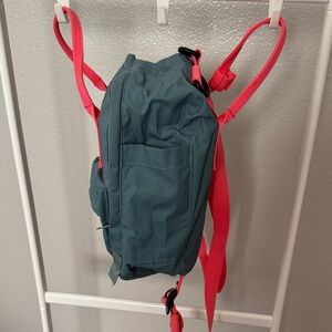 Chic Fjallraven Kånken backpack. Teal body with coral accents. Ideal for daily adventures.