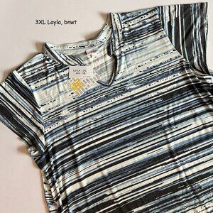 LuLaRoe Striped Layla Short Sleeve Tee - Blue, Black, White, Gray NWT