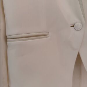 Rag and Bone White Pascal Blazer with Leather Trim. Size 6. Single button closure. Lined. Snap cuffs. Leather trim on pockets and lapel. Excellent condition.