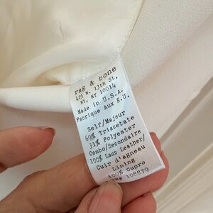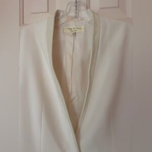 Rag and Bone White Pascal Blazer with Leather Trim on pockets and lapel. Sz 6