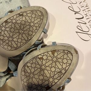 Jewel Badgley Mischka HUMBLE Silver Sparkle Strappy Sandal Heels Size 8.5