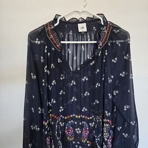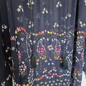 Cabi | Floral Tassel Paisley Sheer Blouse Top Navy Blue 5784, Womens Large