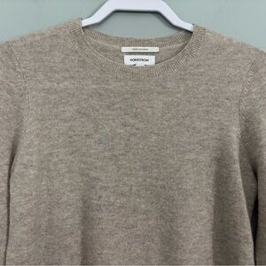 Nordstrom 100% cashmere crewneck sweater in a versatile neutral beige—an elevated wardrobe essential with a soft, lightweight hand and timeless silhouette.