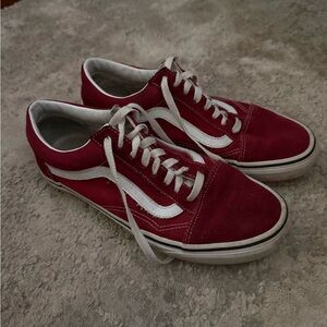 Stylish red sneakers with white detailing. Perfect for casual wear. Classic Vans design.