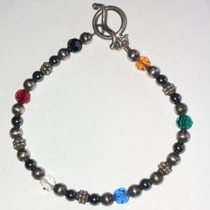 Vintage Beaded Silver Tone Toggle Closure Bracelet