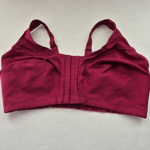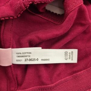 Women's Burgundy Red Full Coverage Wireless Front Closure bra. picot trim 42 DDD 100% cotton. Adjustable straps. Double lined bottom cups provide light lift and support. Hand wash. New no tag never worn.