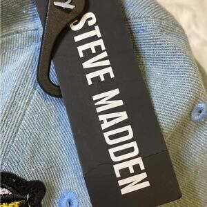Steve Madden Denim Hat Womens Bolts Patch Adjustable Back Blue