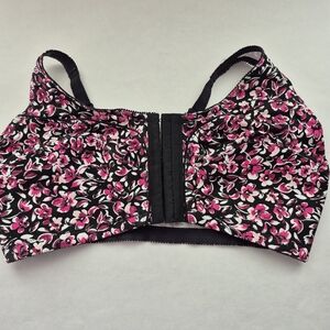 Floral Black and Pink Women's Bra. Full Coverage Wireless Front Closure 42 DDD