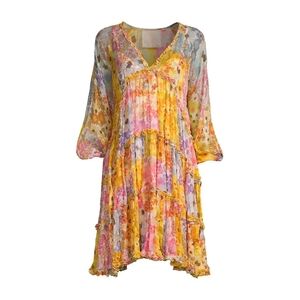 Embrace vibrant style with this floral multicolor mini dress. Perfect for any occasion, it features a blend of yellow, pink, and orange hues.
