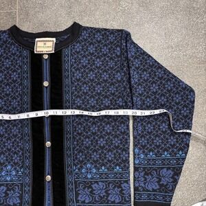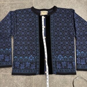 Dale of Norway Pure Wool Cardigan Sweater M Norwegian Blue Black Velvet Trim