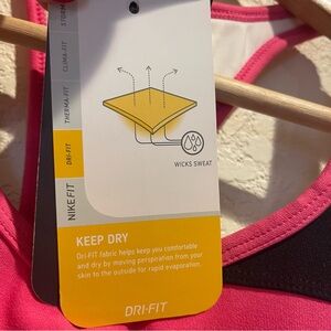 Nike Dri-FIT athletic tank top with racerback design, ideal for running, training, or gym workouts. Sleeveless, scoop neck, contrast binding at neck and armholes, contoured seams for a flattering, fitted silhouette. Size Small New With Tags