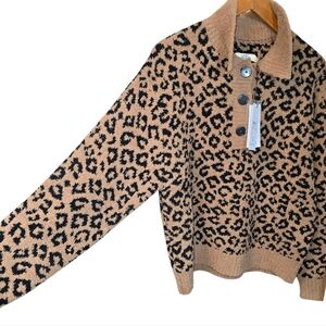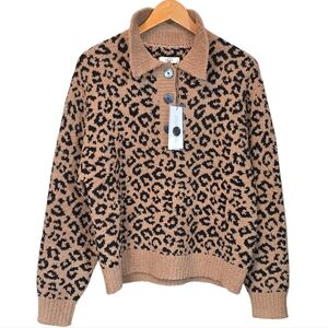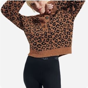 UGG Mowery Jacquard Leopard Print Cozy Knit Collared Sweater NWT Size Large