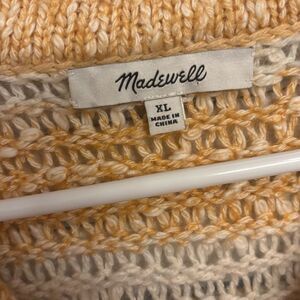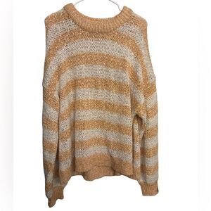This is a preowned peach and cream stripe loose open knit sweater by Madewell. The sweater has no holes or stains but please note that the knit type is open I posted upclose images for details. The sweater is an oversized slouch style.